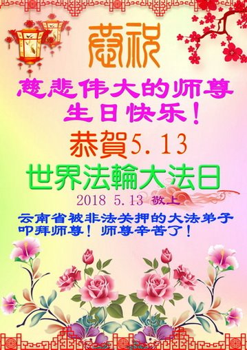 【明慧网二零一八年五月十日】 云南省全体大法弟子恭祝师尊生日快乐!