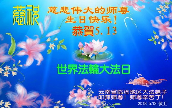 云南省临沧地区大法弟子恭祝慈悲伟大的师尊生日快乐!恭贺5.13世界法轮大法日!