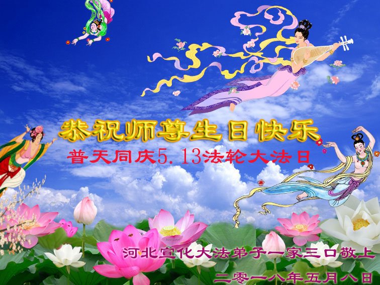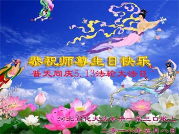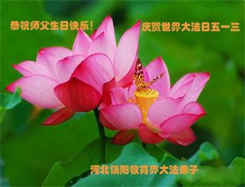 河北廊坊市教育系统大法弟子恭祝师父生日快乐!庆祝五一三世界法轮大法日!