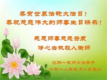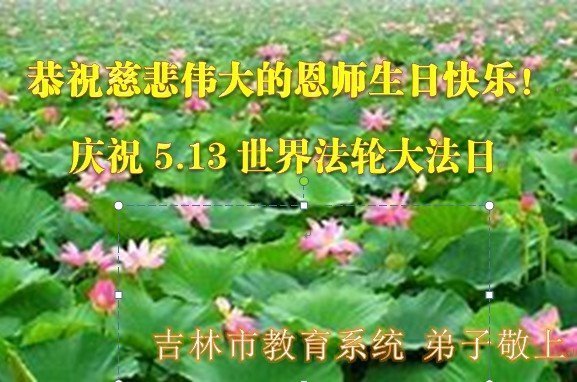 辽宁沈阳一教师大法弟子恭贺世界法轮大法日!恭祝慈悲伟大的师尊生日快乐!
