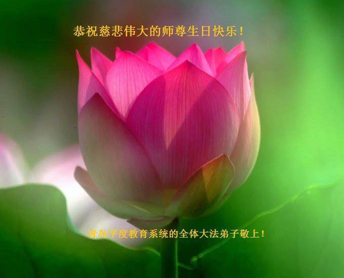 感恩师尊慈悲苦度 修心去执救人谢师 山东省青岛市平度市教育系统的全体大法弟子恭祝师尊生日快乐!