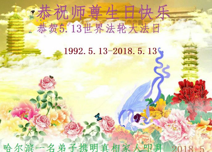 黑龙江省哈尔滨一名大法弟子携明真相家人叩拜!恭祝师尊生日快乐!恭贺5·13世界法轮大法日!