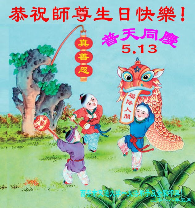 陕西省西安交通大学一大法弟子及全家叩拜师尊生日快乐!