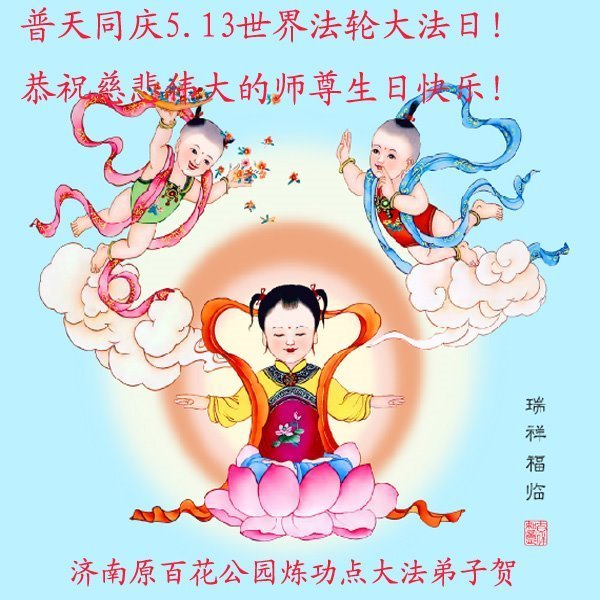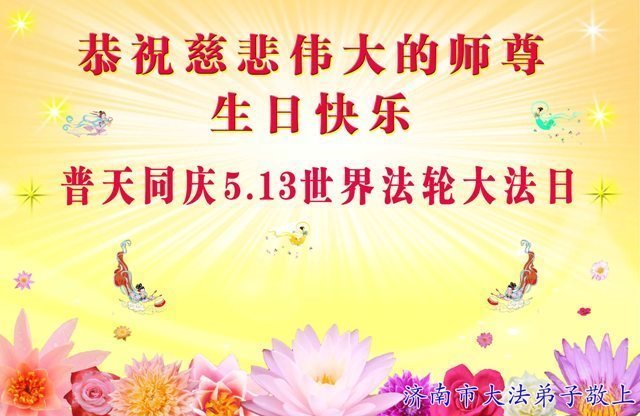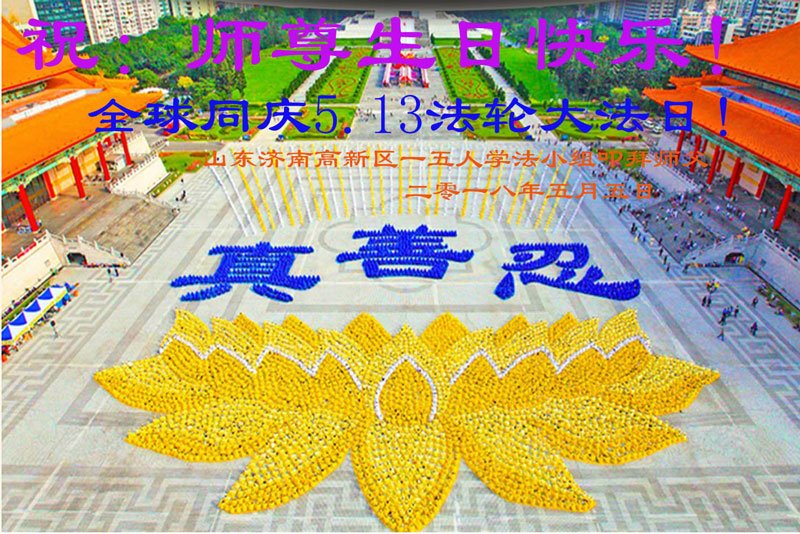 山东省济南大法弟子恭祝慈悲伟大的师尊生日快乐!普天同庆5.13世界法轮大法日!