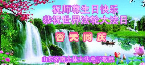 山东济南大法弟子恭贺师尊华诞暨世界法轮大法日!