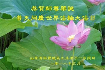 山东济南一大法弟子全家恭贺世界法轮大法日!
