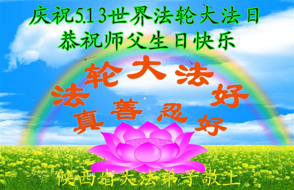 陕西省大法弟子庆祝5.13世界法轮大法日!恭祝师父生日快乐!