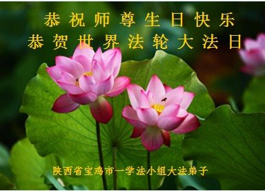 陕西省宝鸡市大法弟子恭祝师尊华诞!恭贺世界法轮大法日!