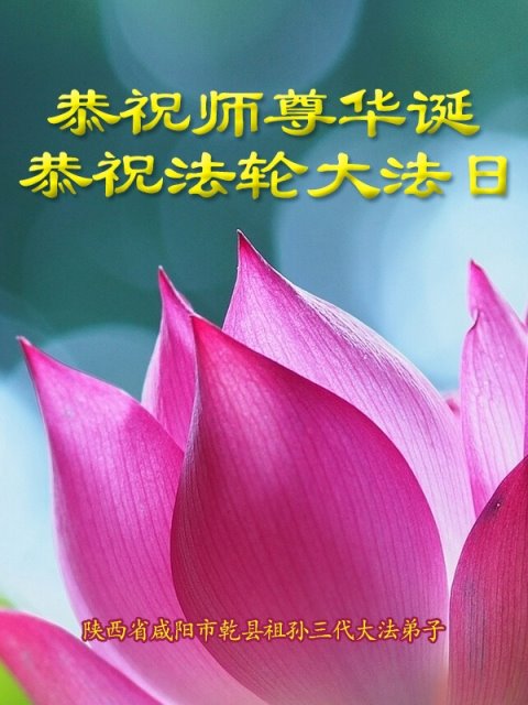 陕西省咸阳市乾县祖孙三代大法弟子恭贺师尊华诞暨法轮大法日!