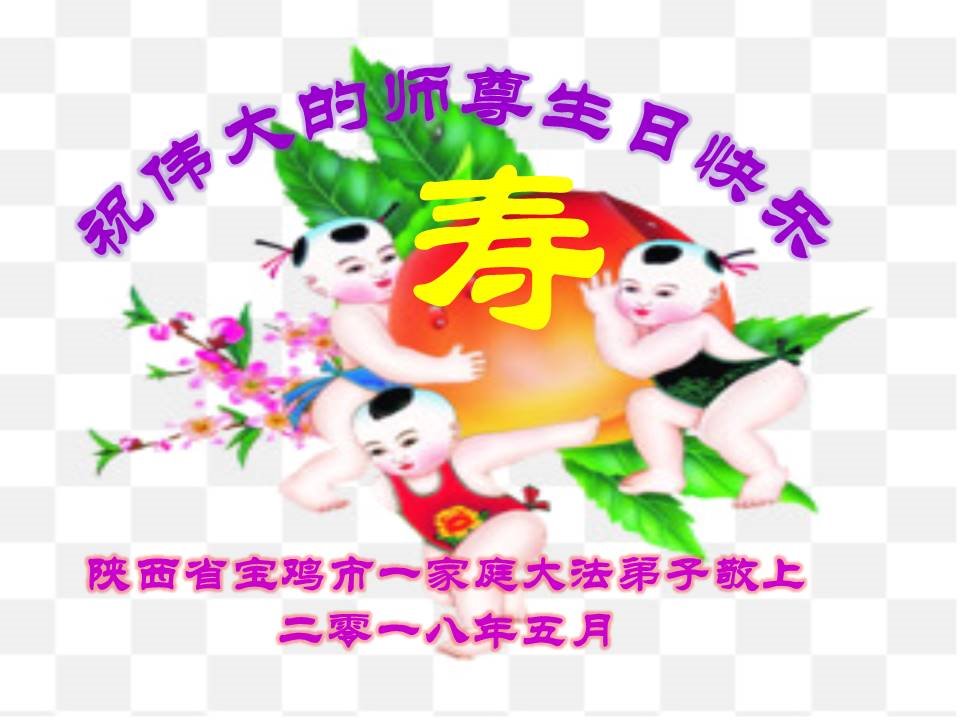 【明慧网二零一八年五月十日】 陕西省宝鸡市一家庭大法弟子祝师尊生日快乐!