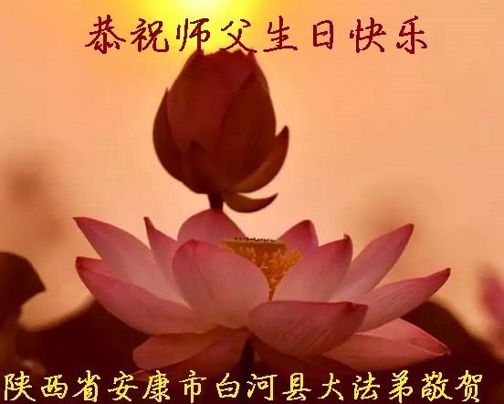 弟子遥叩师尊,恭祝慈悲伟大的师尊生日快乐!千言万语道不尽对师尊的感激,弟子会精進实修,不辜负师尊的期望,让师父欣慰。 陕西省宝鸡市大法弟子恭祝慈悲伟大的师尊生日快乐!恭贺世界法轮大法日!