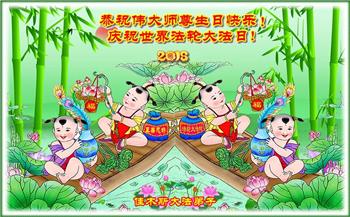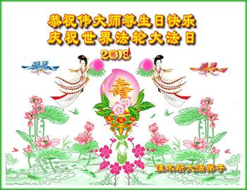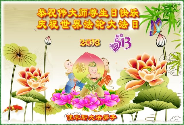 【明慧网二零一八年五月十日】 黑龙江佳木斯大法弟子庆祝伟大师尊生日快乐!并祝贺世界法轮大法日!