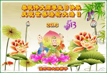 普天同庆五一三世界法轮大法日! 黑龙江省佳木斯市中部一学法小组全体大法弟子恭贺世界法轮大法日