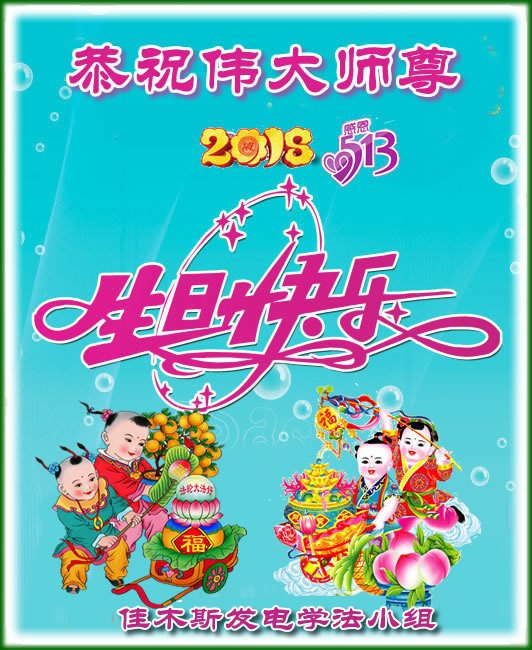 翻开历史新页,正法在最前列。 三亿多人得救,邪恶烂鬼毁灭 弟子助师正法,整体升华和谐。 祝师生日快乐!弟子叩首致谢。 黑龙江省佳木斯大法弟子恭祝伟大师尊生日快乐!并庆祝世界法轮大法日!