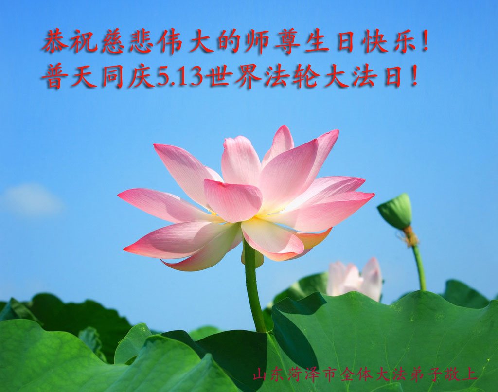 山东菏泽市大法弟子恭祝慈悲伟大的师尊生日快乐!普天同庆5.13世界法轮大法日!