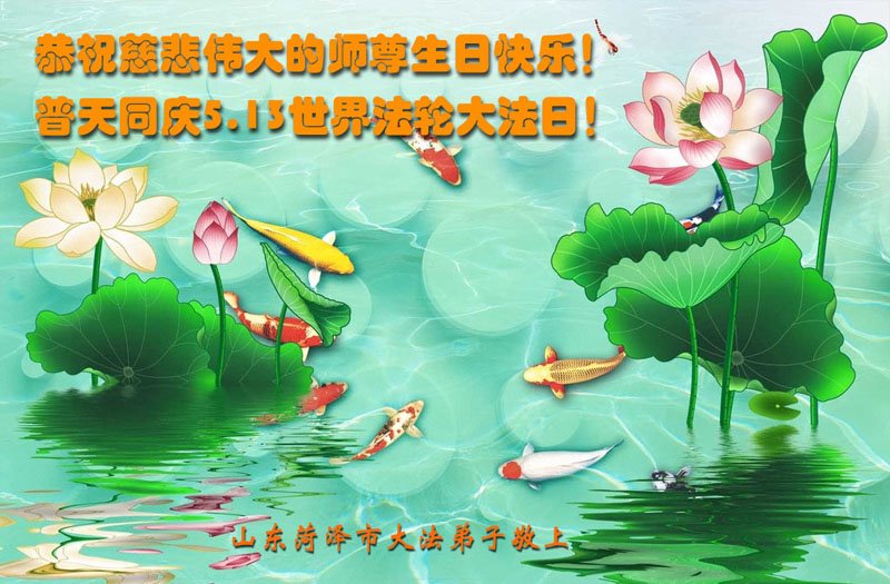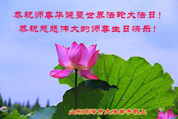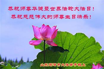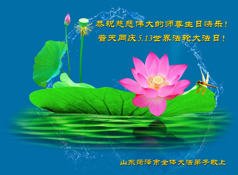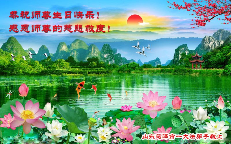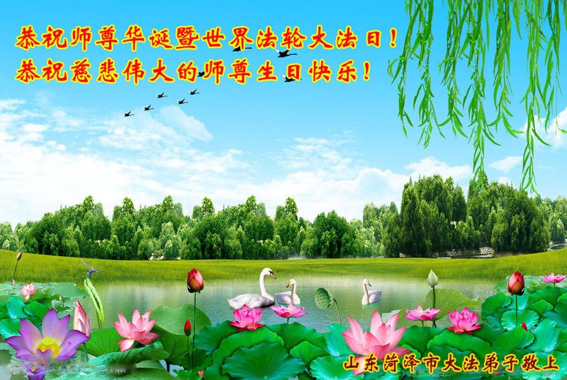 山东菏泽市大法弟子恭祝慈悲伟大的师尊生日快乐!恭贺世界法轮大法日!