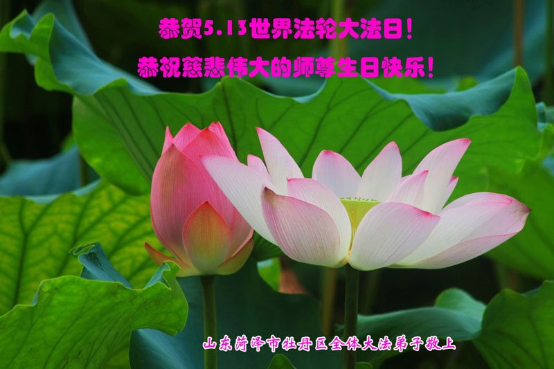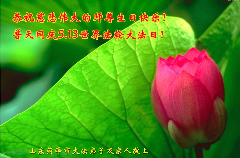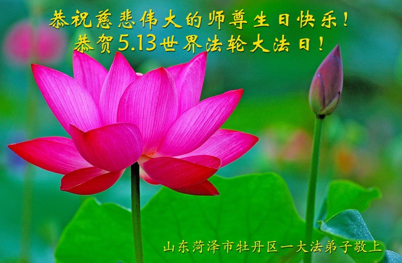 山东菏泽市牡丹区全体大法弟子恭祝慈悲伟大的师尊生日快乐!恭贺5.13世界法轮大法日!