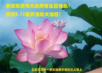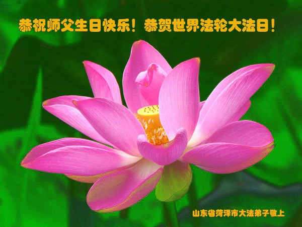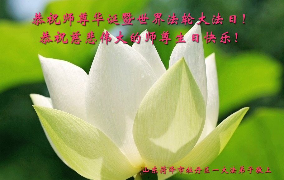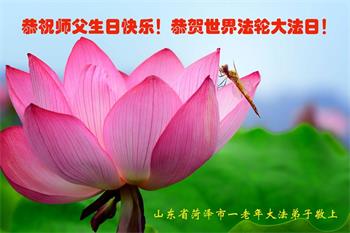 山东菏泽市牡丹区一大法弟子恭祝师尊华诞暨世界法轮大法日!恭祝慈悲伟大的师尊生日快乐!