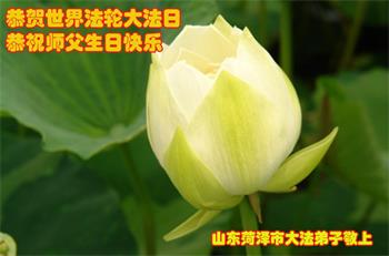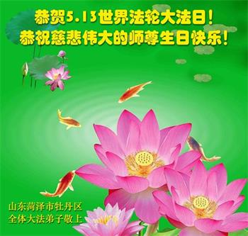 山东菏泽市牡丹区全体大法弟子恭祝师尊华诞暨世界法轮大法日!