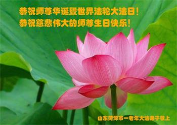 山东菏泽市一老年大法弟子恭祝慈悲伟大的师尊生日快乐!恭贺世界法轮大法日!