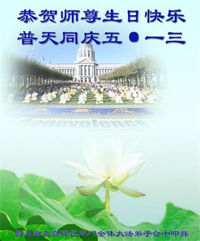 四川遂宁大法弟子恭祝师尊生日快乐!同庆世界法轮大法日!