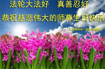 北京朝阳区一家大法弟子恭祝师尊生日快乐!普天同庆世界法轮大法日!