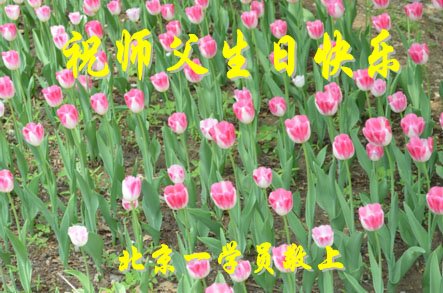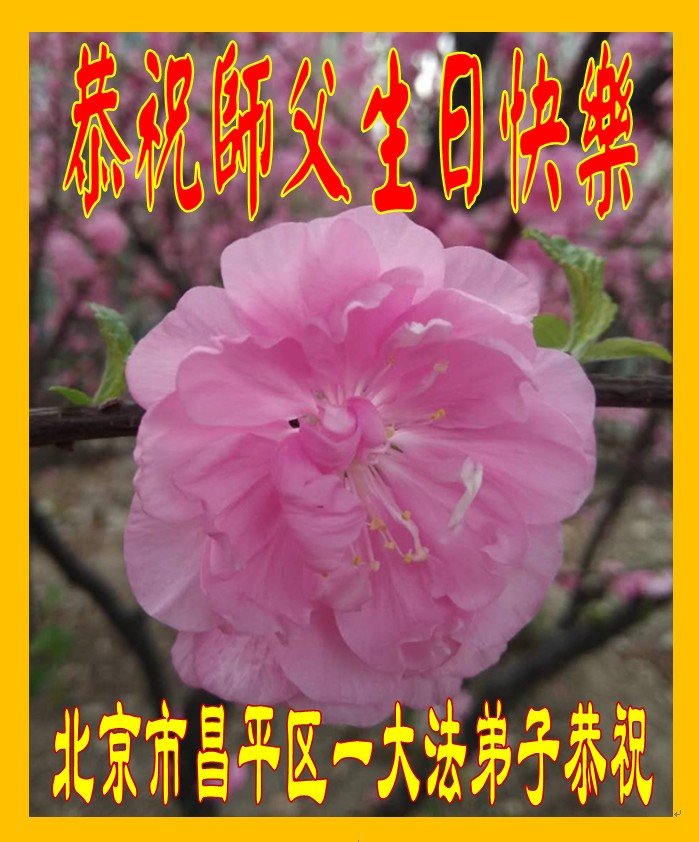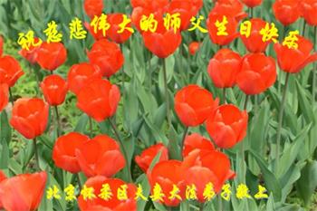 师尊您好、您辛苦了!谢谢师尊传给我法轮大法又给了我一个全新的生命。是师尊给了我生命中的一切,谢谢师尊带我回家、弟子一定谨遵师尊的教诲突飞猛進、珍惜您为了成就弟子用巨大的付出与承受一再延续来宝贵的时间。多学法、学好法、在学好法的基础上修去所有的人心与执着、争斗心和抱不平的心、在法上归正自己的一思一念、一言一行、不能在无意中伤害同修、全盘否定旧势力的一切安排。看同修的闪光点,默默圆容与配合同修、踏踏实实的修好自己做好三件事。利用各种方式多救人兑现史前誓约和师尊回家 。师尊弟子想您、愿您早日回大陆、弟子在大陆恭迎师尊。 北京怀柔区大法弟子恭祝师尊生日快乐!及大法洪传二十六周年!