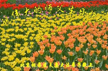 想师尊 颂师恩 花妍柳翠万象新 弟子感恩想师尊 恭贺世界大法日 恭祝师尊华诞快乐! (一) 成住坏灭宇宙规 穹危无措众神悲 慈心一念法主来 师立穹顶放光辉 跪迎神主下莲台 与主签约抛神环 随主下走入尘寰 同化大法天胆来 大戏辉煌神州地 轮回演绎沧桑去 奠基两亿辛勤筹 中心之国师亲定 锣鼓喧嚣五千年 酣演痴看集天缘 神传神州神文化 法开三界师尊做 (二) 跌宕红尘不知险 名争利斗情作茧 苦海轮回业相伴 醉卧他乡忘本愿 创世神主塑法徒 史铸苦锻朝野炼 风流千古群英显 建勋消业威德远 师找徒儿徒等师 师管徒儿徒不知 沉浮百炼功德垒 循踪再牵一线缘 (三) 创世法主设法坛 天降祥瑞法轮旋 传法救人开天门 引徒得法结圣缘 师恩铺就修炼路 捞起除名史罪减 净化身心下法轮 万千机制本体旋 苦口婆心授法理 五套功法全到位 绝处逢生慈悲度 师尊呵护走神路 法轮神功神州传 师尊威名天下颂 得法修炼一亿众 高德大法人心正 (四) 再造容易救度难 师尊海外度有缘 慈音唤醒迷中众 得法结缘上法船 天国乐团声威壮 师创神韵救世人 回归传统路通天 三千嘉奖四海传 道德丰碑四二五 光耀人间载宇册 全球盛赞法轮功 世界舞台亮神采 (五) 九九中共举屠刀 江妖妒嫉邪灵嚣 撒旦旧势卷狂澜 空前宇业法徒难 党媒鼓噪谣骗煽 中原遍地起狼烟 刀斧推众悬崖边 是非混淆真伪颠 法船扬帆师掌舵 导航引徒破妖雾 经文篇篇揭迷底 经书卷卷解迷惑 法徒明理志愈坚 神路不在步蹒跚 使命担肩誓约在 三件做好是兑现 广传真相救世人 三亿勇退!党!团队 正信无畏正义存 二十万众诉江鬼 ·九·评*问世促人醒 扒光恶党现原形 终极毁人警钟鸣 解体邪共中西盟 徒业人债师身当 宇业史罪师身担 耗尽一切度弟子 舍尽一切救苍生 卑鄙暗杀师不言 巨难身受师不语 诬陷诽谤师不记 弯路跌倒师不弃 慈心不落一弟子 抛肉洒血为徒还 大劫已到神力推 一推再推唤回归 (六) 正法洪势微观来 辉煌壮丽呈人间 新宇金光耀穹体 法徒了愿随师还 浩荡师恩言不尽 师恩浩荡语难全 得救众生叩师尊 穹宇难载师洪恩 大陆十五位大法弟子恭祝师尊生日快乐!普天同庆世界法轮大法日!