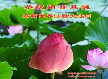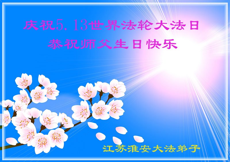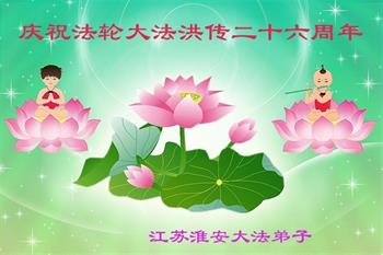 江苏淮安大法弟子恭贺法轮大法洪传二十六周年暨第十九届世界法轮大法日,恭祝师尊华诞!