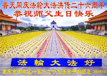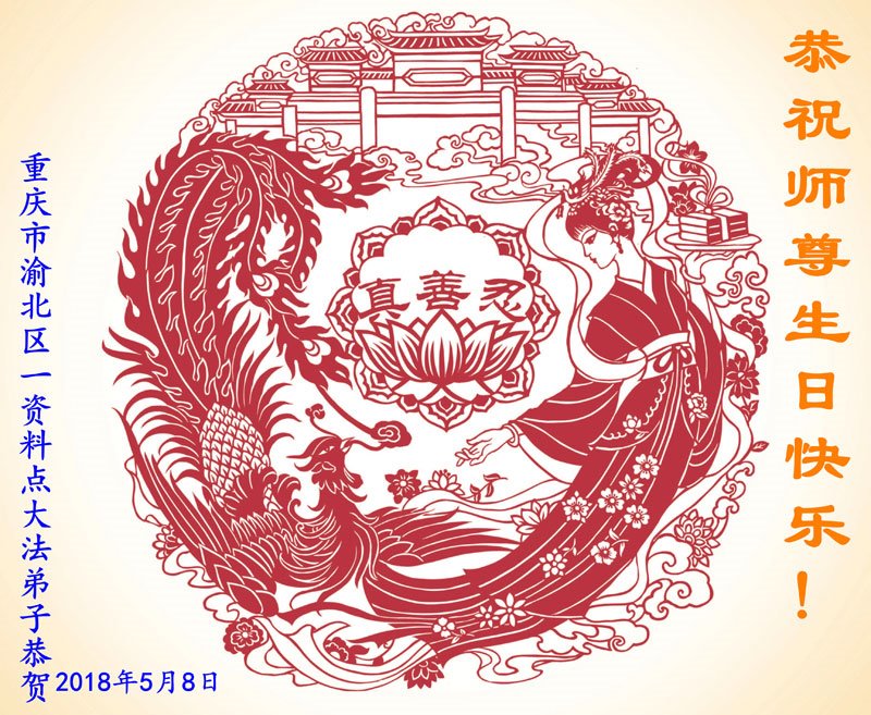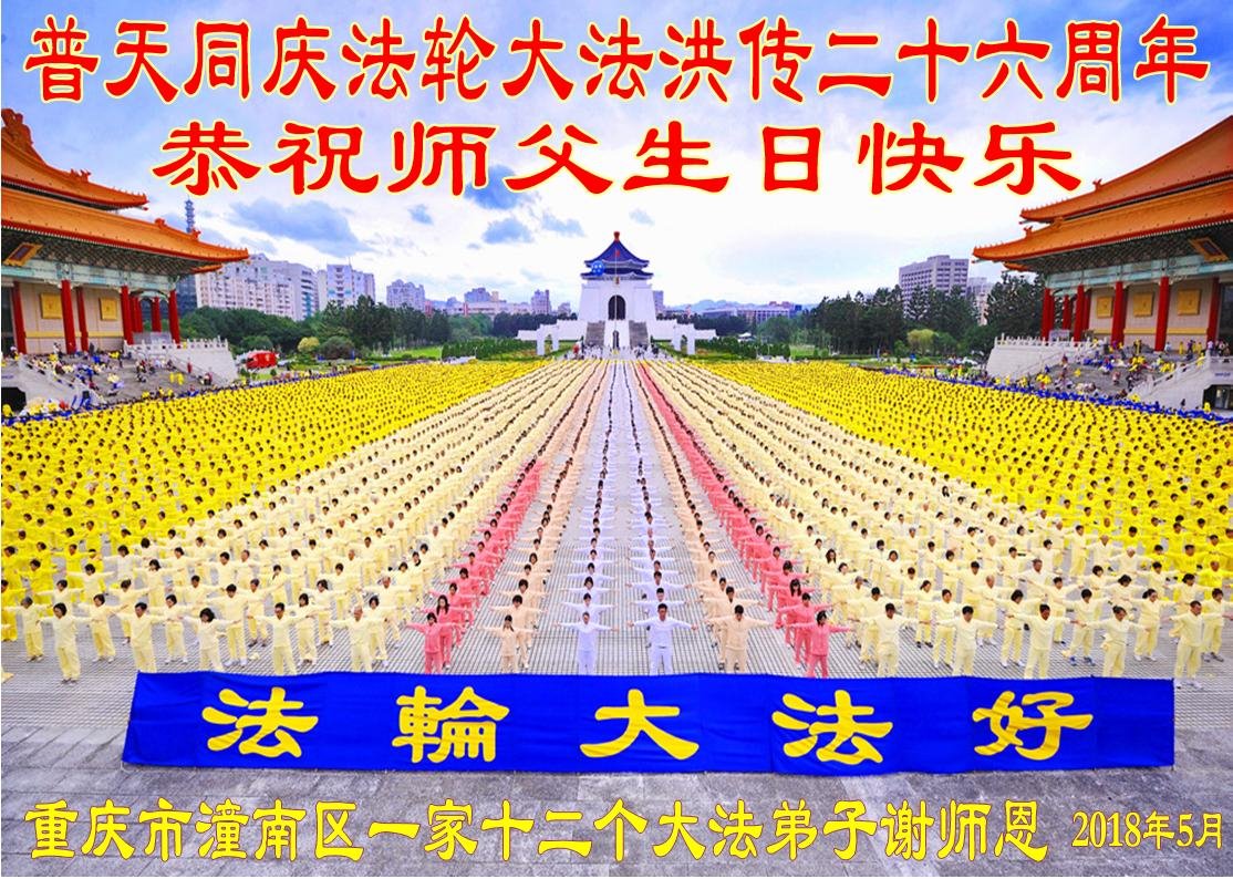 恭祝师父生日快乐! 重庆市潼南区一家十二个大法弟子谢师恩! 重庆市綦江区大法弟子恭祝师父生日快乐!恭贺第十九届世界法轮大法日!