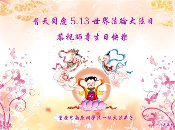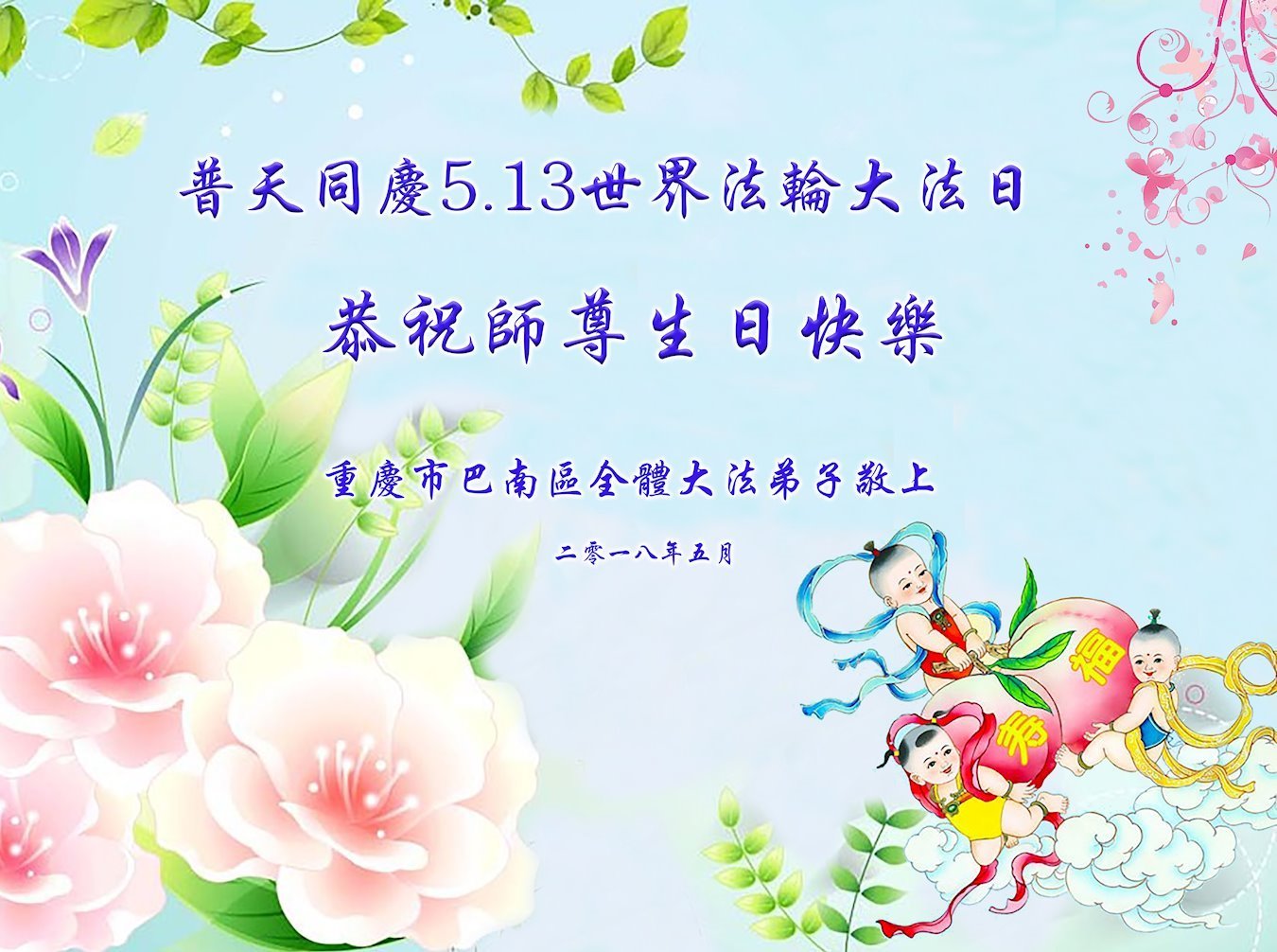 重庆市巴南区全体大法弟子恭贺法轮大法日!恭祝师尊生日快乐!