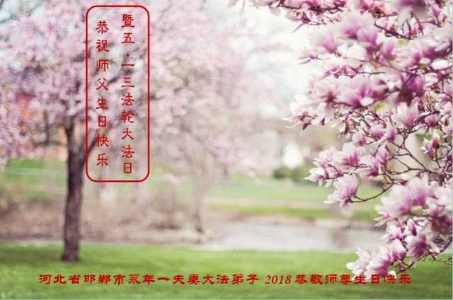 我们作为师父的弟子,只有做好三件事,多救人。以报师恩! 河北省邯郸市永年一夫妻大法弟子2018恭敬师尊生日快乐!