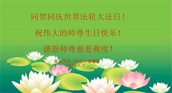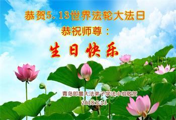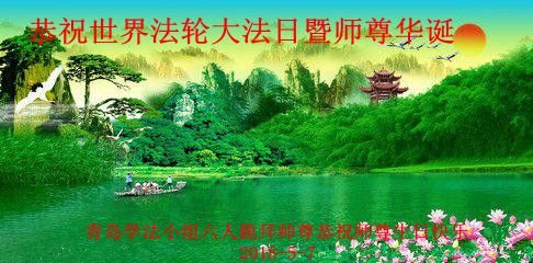 山东省青岛学法小组大法弟子三人恭祝师尊华诞!庆贺世界法轮大法日!
