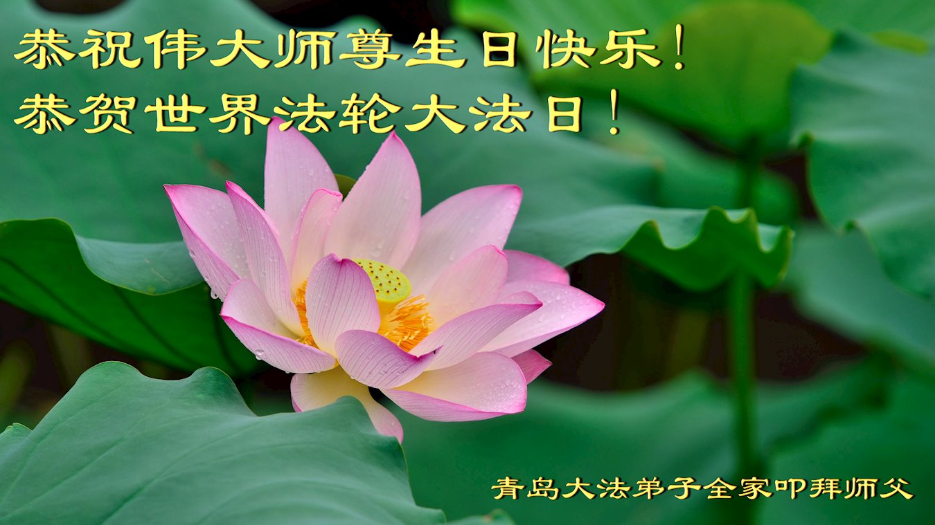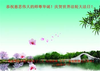 在师父生日和法轮大法日来临之时,携全家祝师父生日快乐! 弟子一定听师父的教诲。做好三件事,修去人心,去掉执着,随师圆满回家! 青岛平度大法弟子 山东省青岛市平度市一大法弟子恭贺法轮大法日!