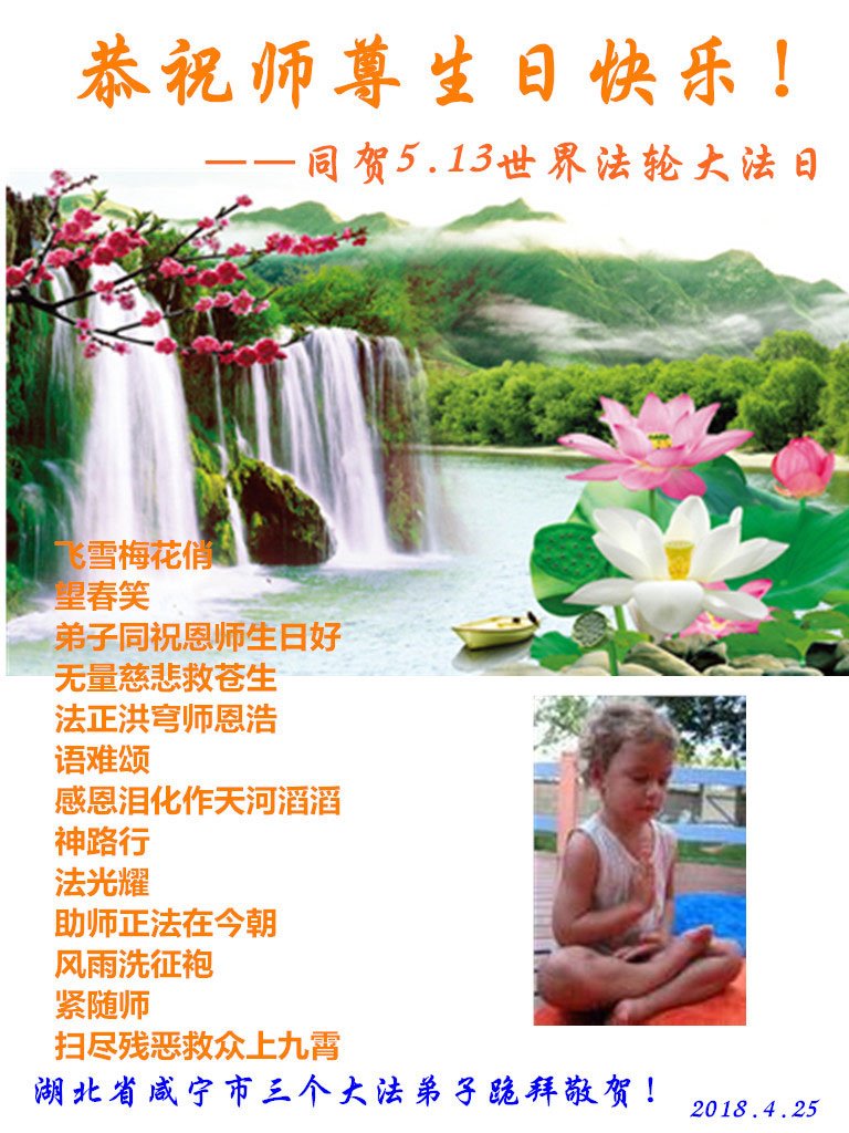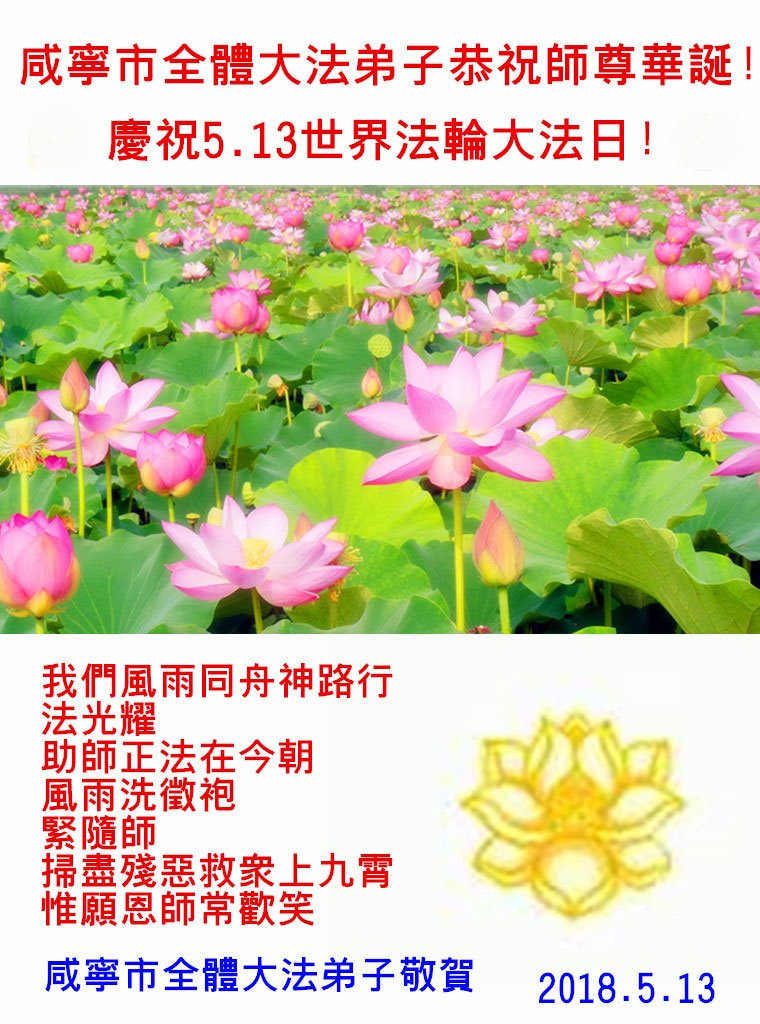 湖北省咸宁市全体大法弟子恭祝师尊华诞!同贺5.13世界法轮大法日!
