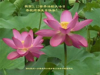 湖北十堰大法弟子恭祝师父生日快乐!恭贺世界法轮大法日!