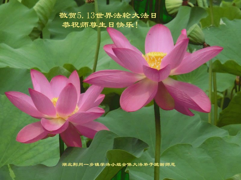 湖北荆州一乡镇学法小组全体大法弟子恭祝师尊生日快乐!普天同庆5.13世界法轮大法日!