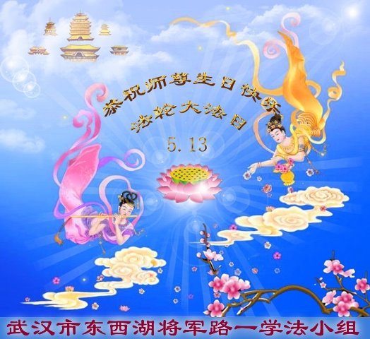 湖北省武汉武昌一学法小组全体大法弟子恭贺法轮大法日!恭祝师尊生日快乐!