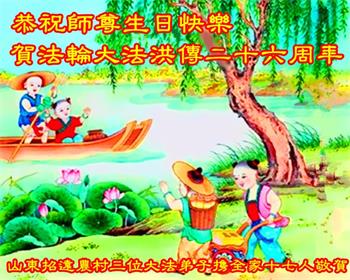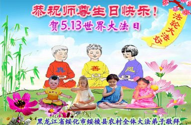 山东省烟台市栖霞市一家三口大法弟子恭贺世界法轮大法日!祝慈悲伟大的师父生日快乐! 山东省烟台市栖霞市全体农村大法弟子恭贺世界法轮大法日!祝慈悲伟大的师父生日快乐! 河北省沧州市河间市乡村大法弟子恭庆世界法轮大法日,恭祝师父生日快乐!