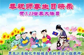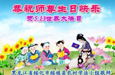 黑龙江省绥化市绥棱县农村全体大法弟子恭祝师尊生日快乐!