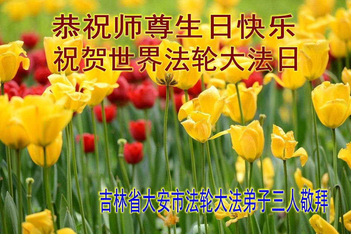 吉林省白城市大安市大法弟子三人恭祝师尊生日快乐!祝贺世界法轮大法日!