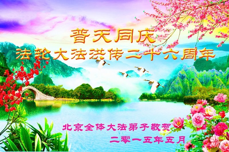 北京全体大法弟子敬贺法轮大法洪传二十六周年!