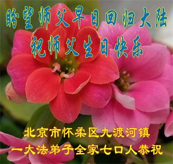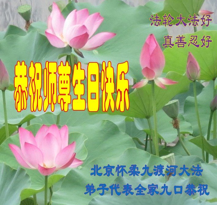 北京怀柔九渡河大法弟子代表全家九口恭祝师尊生日快乐!法轮大法好!真善忍好!