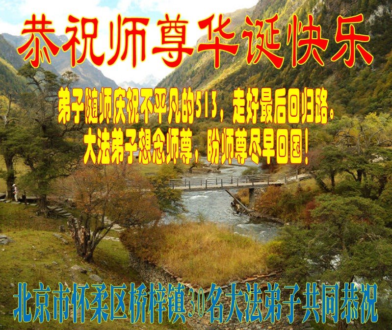 北京市怀柔区桥梓镇三十名大法弟子共同恭祝师尊华诞快乐!