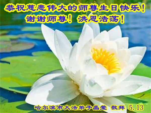 师尊辛苦了!恭贺世界法轮大法日!这是普天同庆、同祝、同颂的伟大节日!感恩法轮大法、感恩大法师父的慈悲救度、洪恩浩荡! 黑龙江哈尔滨市一大法弟子恭祝慈悲伟大的师尊生日快乐!