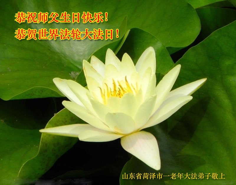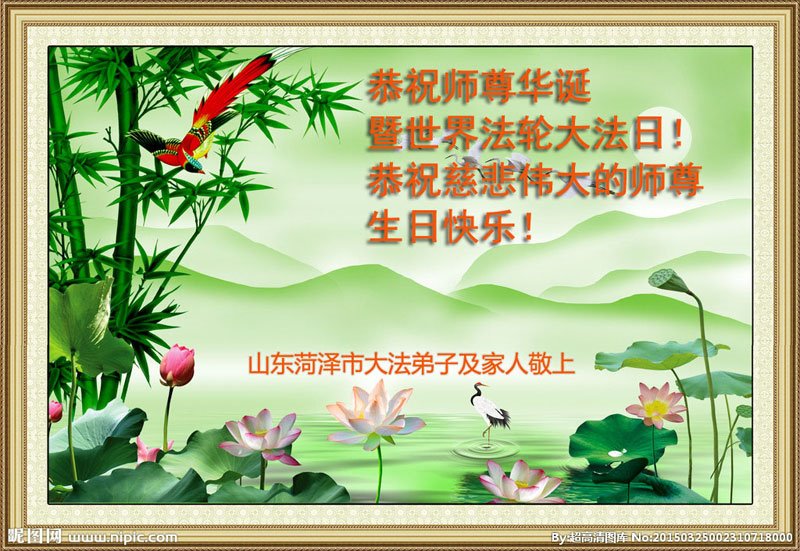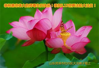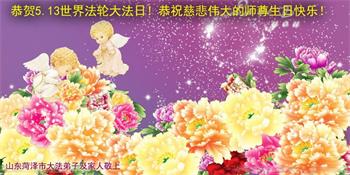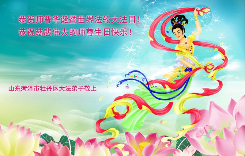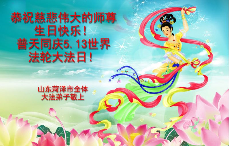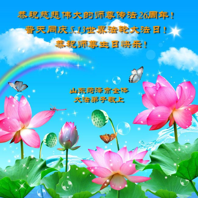 山东菏泽市一大法弟子恭祝师尊华诞暨世界法轮大法日!恭祝慈悲伟大的师尊生日快乐!