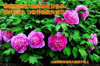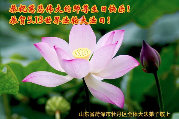 山东菏泽市牡丹区全体大法弟子恭祝慈悲伟大的师尊生日快乐!恭贺5.13世界法轮大法日!