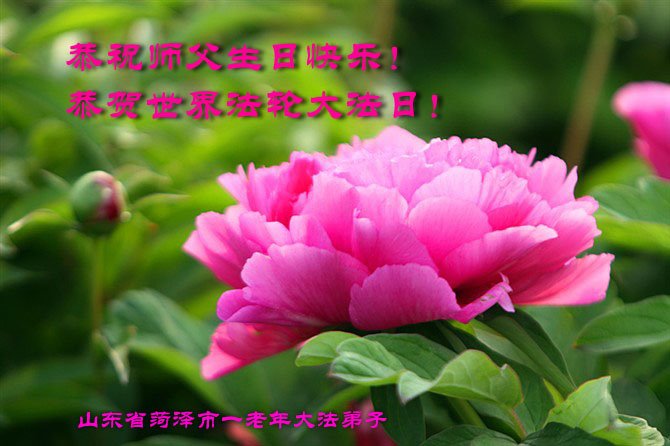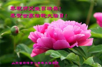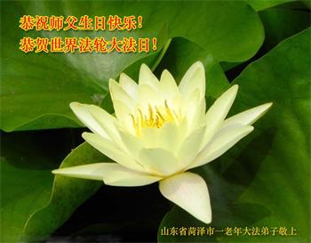 山东省菏泽市一老年大法弟子恭祝师父生日快乐!恭贺世界法轮大法日!