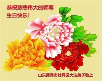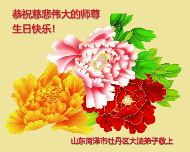 山东菏泽市牡丹区大法弟子恭祝慈悲伟大的师尊生日快乐!恭贺世界法轮大法日!