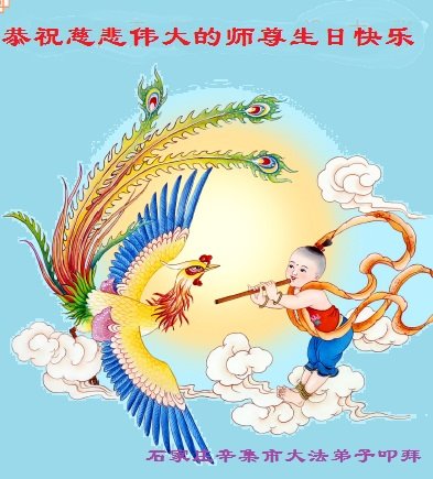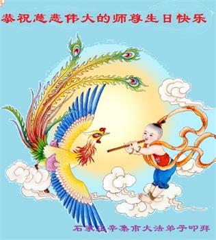 我丈夫真心的祝师父生日快乐!祝贺世界法轮大法日! 河北省石家庄一学法小组全体大法弟子恭祝师尊华诞快乐!